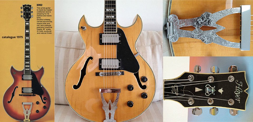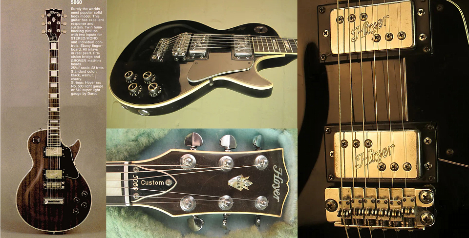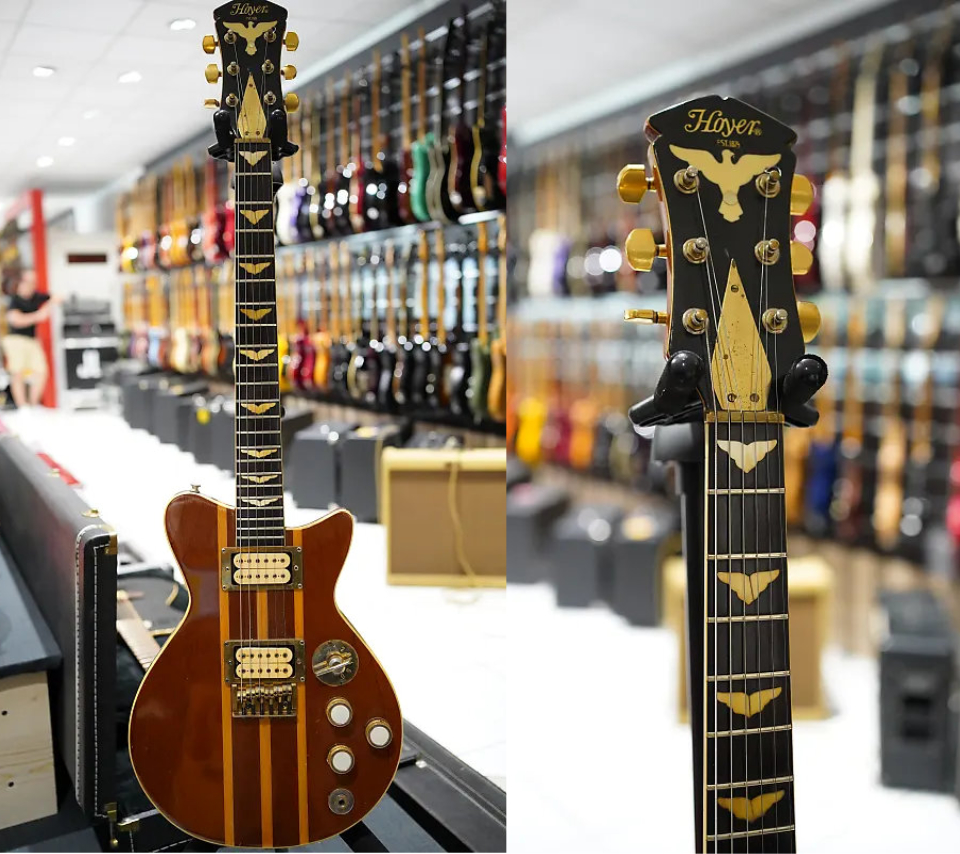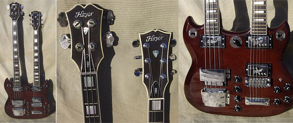 On est ici dans du haut de gamme avec cette Hoyer "Eagle" de 1977. Corps en érable, accastillage laiton massif, mécaniques Schaller plaquées or. |