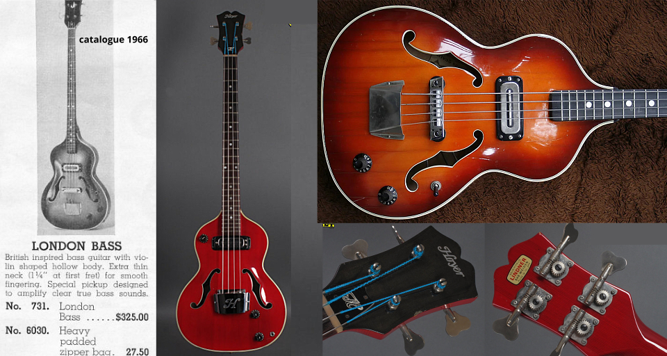 Un modèle "London Bass type 43" semi-acoustique vers 1966/67, un micro simple bobinage. |