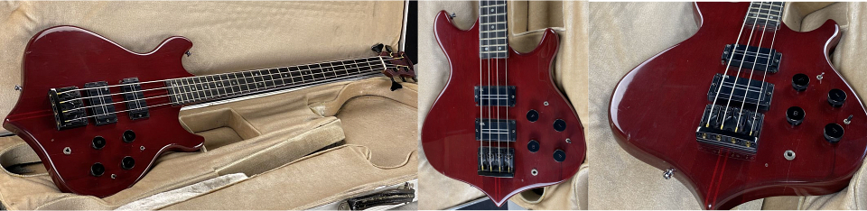 Une autre "Eagle bass" magnifique, mais avec manche vissé, micros Seymour Duncan, cordes fixées à travers le corps pour encore plus de sustain. |