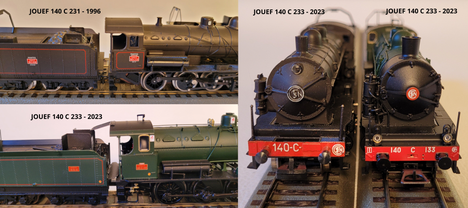 Voici quelques comparaisons entre ce modèle récent de 2023, avec la 140 C de 1996 de cette même marque Jouef montre les avancées du jouet vers la "maquette". |