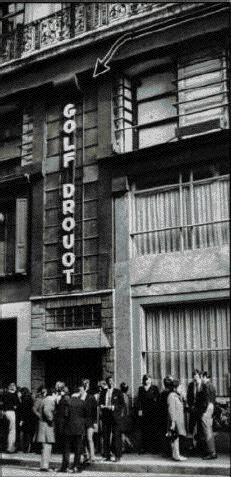 Cette salle devenue une véritable institution était un golf miniature, situé au premier étage du 2 rue Drouot à Paris, au dessus du café d'Angleterre devenu aujourd'hui un MacDo. Henri Leproux eut l'idée d'en faire un lieu de rendez-vous musical pour les jeunes. Le fameux "tremplin", était une petite scène installée en mars 1962, et sur laquelle vont défiler, non seulement toutes les vedettes de la vague yéyé, mais aussi des groupes amateurs auxquels Henri Leproux voulait donner une chance tous les vendredis soir. Plus de 6000 groupes s'y produiront ! C'est là que j'avais été voir mon copain victor et ses "silver stars" alors qu'ils accompagnaient Vigon ! Juste avant que ce dernier ne change pour les lemons. Le golf drouot a fermé définitivement ses portes en 1981. Si vous voulez en savoir plus sur le golf drouot vous pouvez consulter cet excellent site : http://www.golfdrouot.ifrance.com |